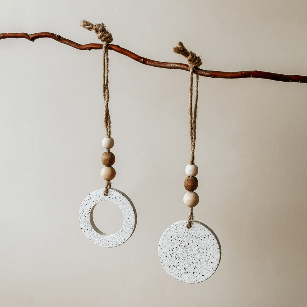 Chaque pièce est accompagnée de perles en bois brut, teintées naturellement avec du brou de noix, pour une finition élégante et authentique. Disponibles en deux modèles – plein (40 g) ou creux (25 g) – ils s’adaptent à toutes vos envies et à vos espaces.