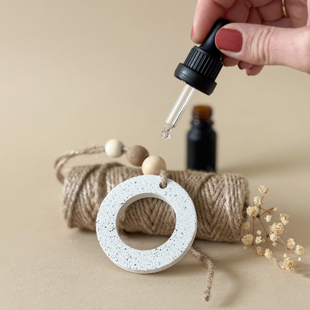 Laissez la matière absorber, puis suspendez ou placez le galet dans l’espace de votre choix (chambre, dressing, voiture, salle de bain…).